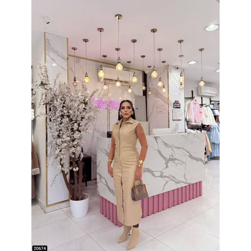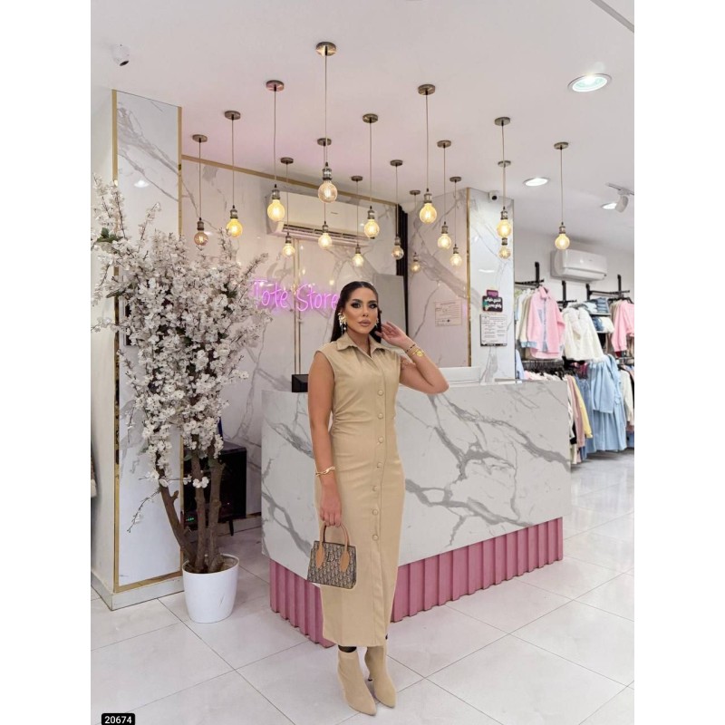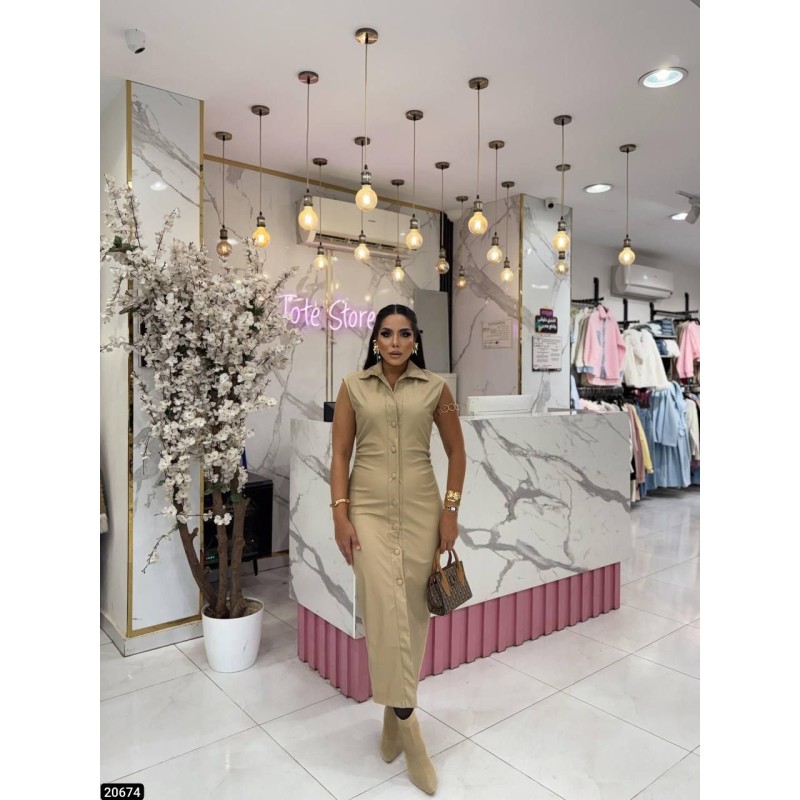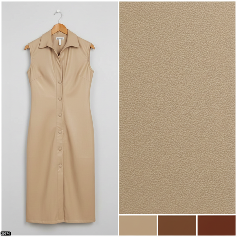 A chic sleeveless leather dress designed with a full button-down front and a structured collar. Made from a smooth, tailored fabric that enhances the body’s natural shape while offering a polished and minimal look. Perfect for daytime outings, office styling, or smart casual occasions. Pairs effortlessly with heels, sandals, or layered jackets