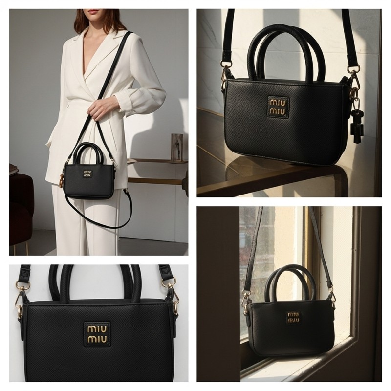 Achieve a sleek, modern look with this structured mini bag. The compact, rectangular design is finished in a subtle pebbled material, offering durability and style. It features dual curved top handles for elegant hand-carry and a thin, adjustable, detachable strap for use as a crossbody or shoulder bag. The front is accented with a recognizable gold-tone logo. This bag is perfect for carrying your essentials while maintaining a polished and sophisticated appearance for both day and evening events